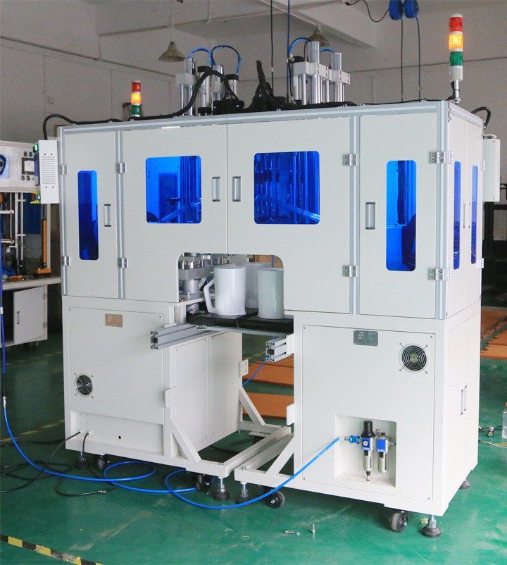 電熱水壺外殼自動(dòng)鎖螺絲設(shè)備,坐標(biāo)式機(jī)械臂多頭同時(shí)鎖附4顆產(chǎn)品螺絲。可直接放置在生產(chǎn)流水線上,通過裝配線的滑動(dòng),使產(chǎn)品流動(dòng)到對(duì)應(yīng)位置。鎖螺絲機(jī)設(shè)備自動(dòng)定位鎖附產(chǎn)品螺絲后,滑到下一步生產(chǎn)工序。快速實(shí)現(xiàn)自動(dòng)化生產(chǎn)。