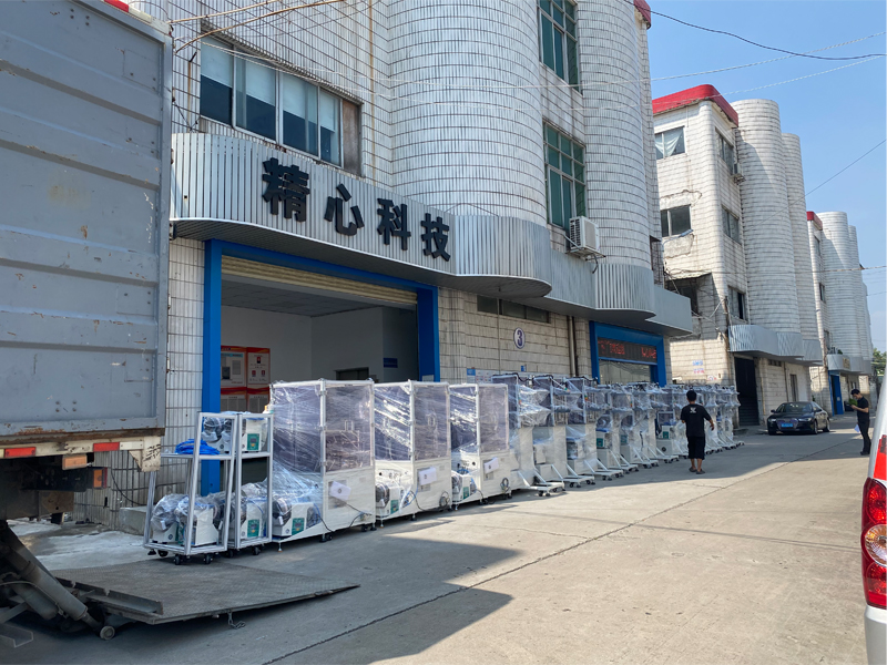經過長達半個多月時間的努力,15臺自動鎖螺絲機設備組裝調試完成了。上午裝配部的同事開始對設備進行打包,然后把設備從車間拉到門口,等待裝車出貨。