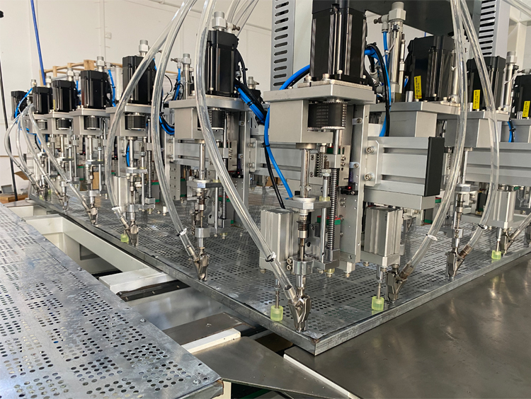 它是由一片鐵皮網跟框架組合而成,需要鎖附幾十顆螺絲。傳統的鎖附方式不僅速度慢,而且很容易割到手。根據這一特性,我們采用了多頭式自動鎖螺絲,一鍵鎖附幾十顆產品螺絲,不僅速度快且鎖附穩定。減少了漏鎖或者浮鎖的情況發生,有效提升產品生產率。